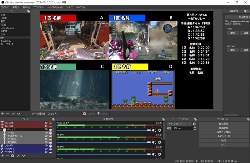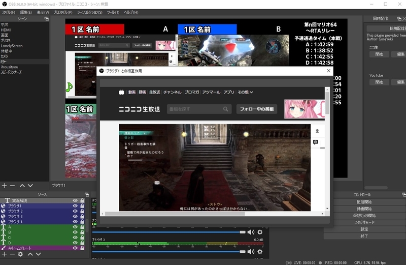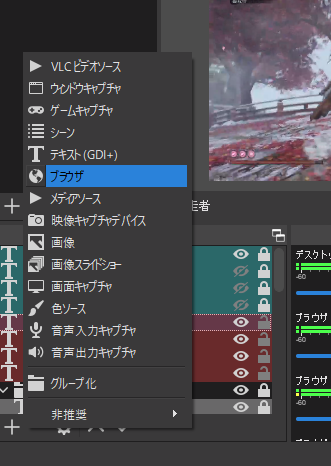 走者の画面のキャプチャにはOBSの「ブラウザ」という機能を使います。