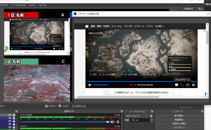このブラウザという機能の便利なところはOBSのソフト上でブラウザを操作できる点にあります。