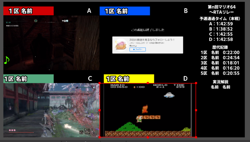 先日マリオ64ガチリレーの大会のミラーをしました。(くっそ前)