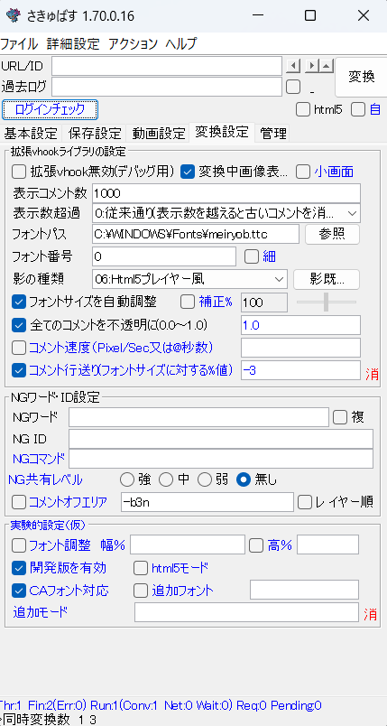ここを半分の30.0などにするとフレームレートが低くなるので少しカクカクしたコメントの流れ方になりますが結合にかかる時間が短くなります。