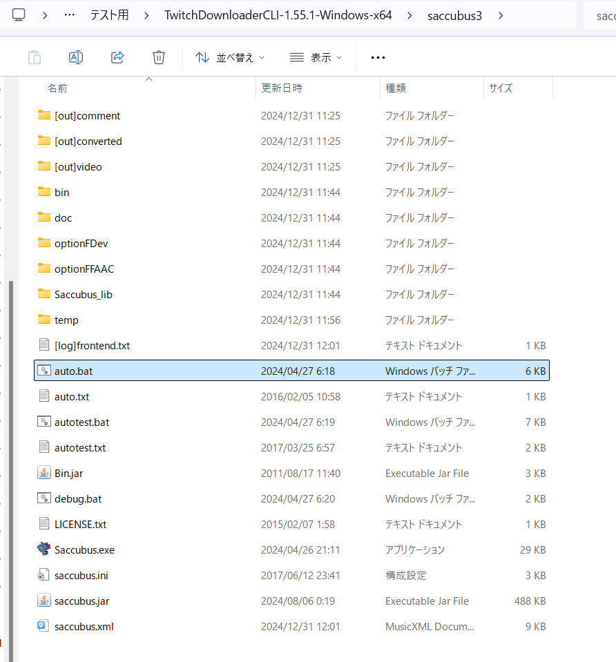 「TwitchDownloaderCLI」フォルダ内auto.batをダブルクリックで実行します。