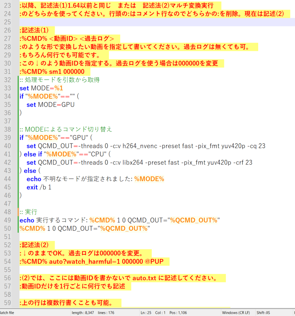 auto.batをメモ帳などで開き、いくつか変更を加えていきます。