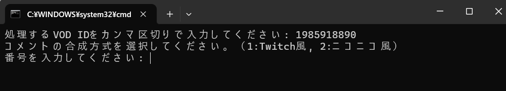 コメントの合成方式を選択してください。(1:Twitch風, 2:ニコニコ風)