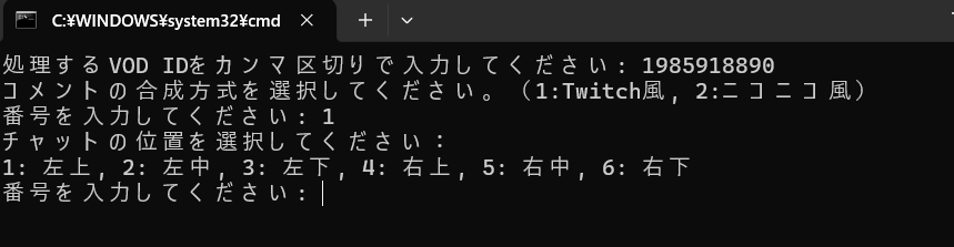 以前こちらの記事でTwitchの映像、チャットダウンロードからさきゅばすでのコメント合成の仕方を紹介したのですが、手順が多くてくそめんどくせぇってことで、自動化するコードを作成しました。