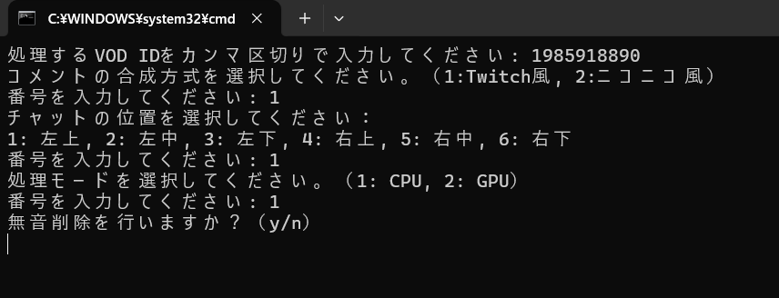 無音削除を行いますか?(y/n)