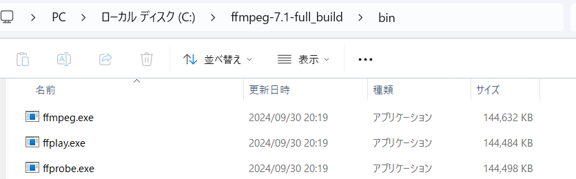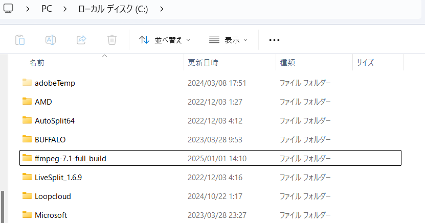 これでフォルダ内にffmpegが追加されます。これがないと動画のレンダリングができないので絶対に入れて下さい。